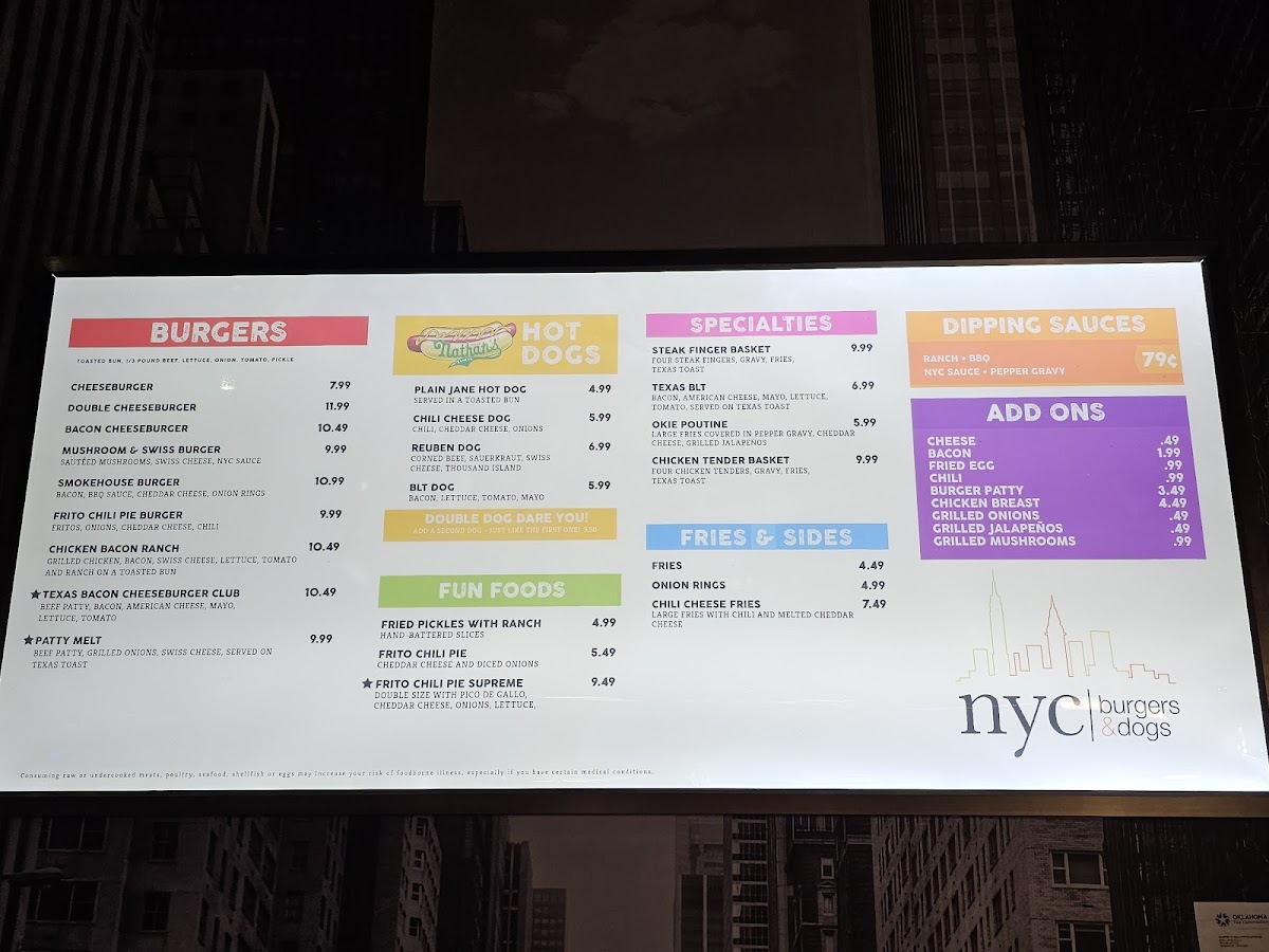 Introducing NYC Burgers & Dogs, the ultimate spot for burger and hot dog enthusiasts! Located at 777 Casino Ave in Thackerville, OK, this eatery delivers a vibrant menu that tantalizes your taste buds. Their burgers range from classic favorites like the Cheeseburger and Bacon Cheeseburger to innovative creations like the Frito Chili Pie Burger and the succulent Smokehouse Burger. For hot dog lovers, the offerings include the satisfying Chili Cheese Dog and the unique Reuben Dog.